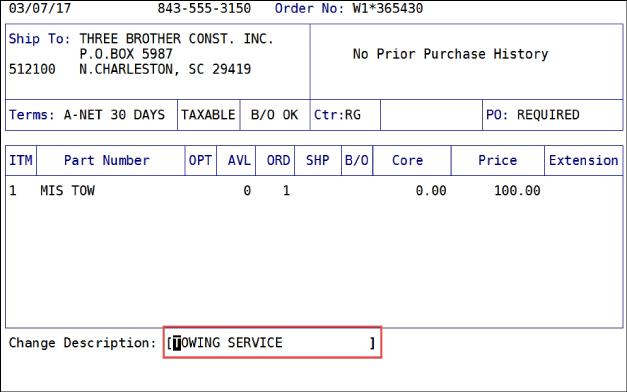 Miscellaneous Charges are non-stocked items; you may have to choose (N)on-Stock